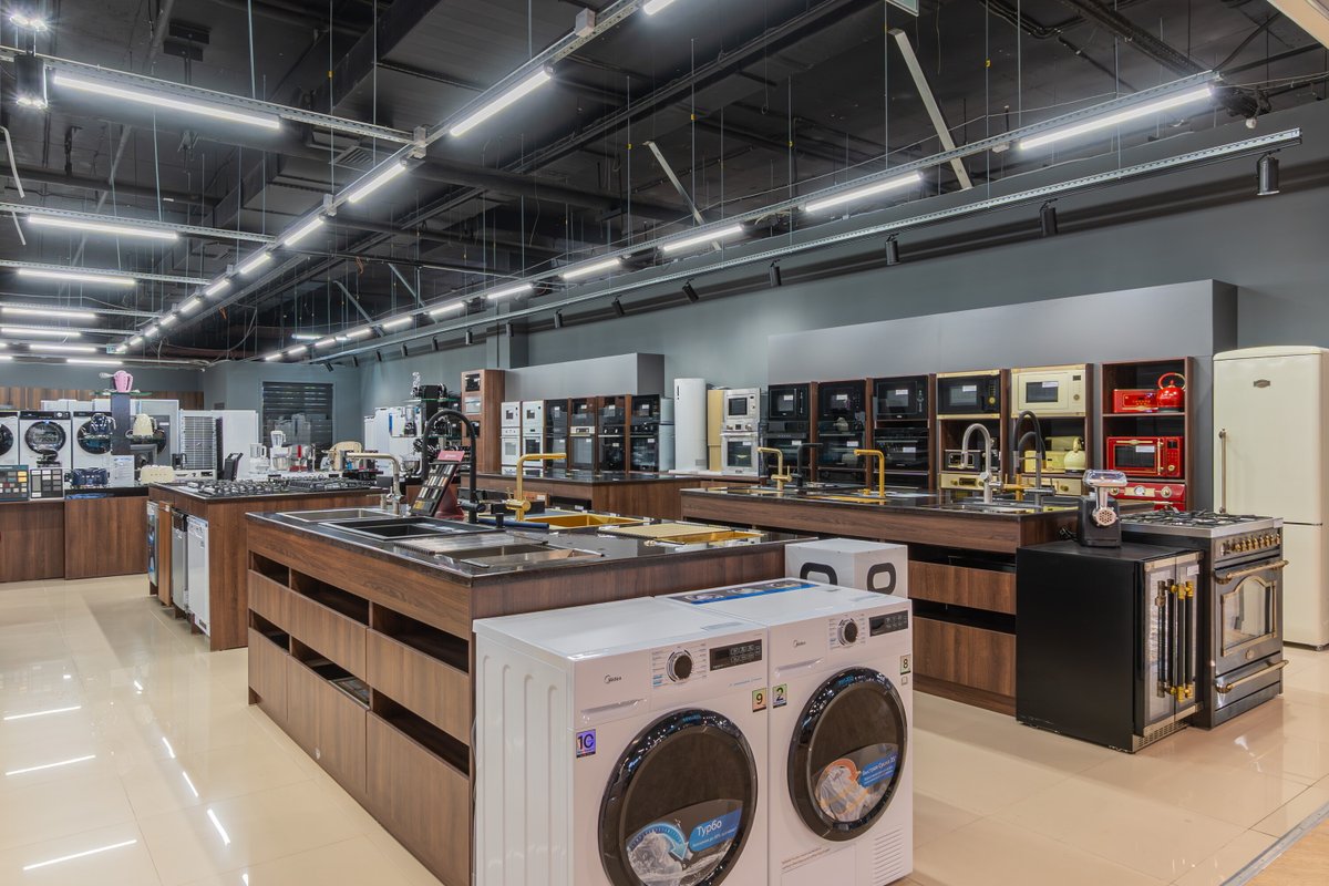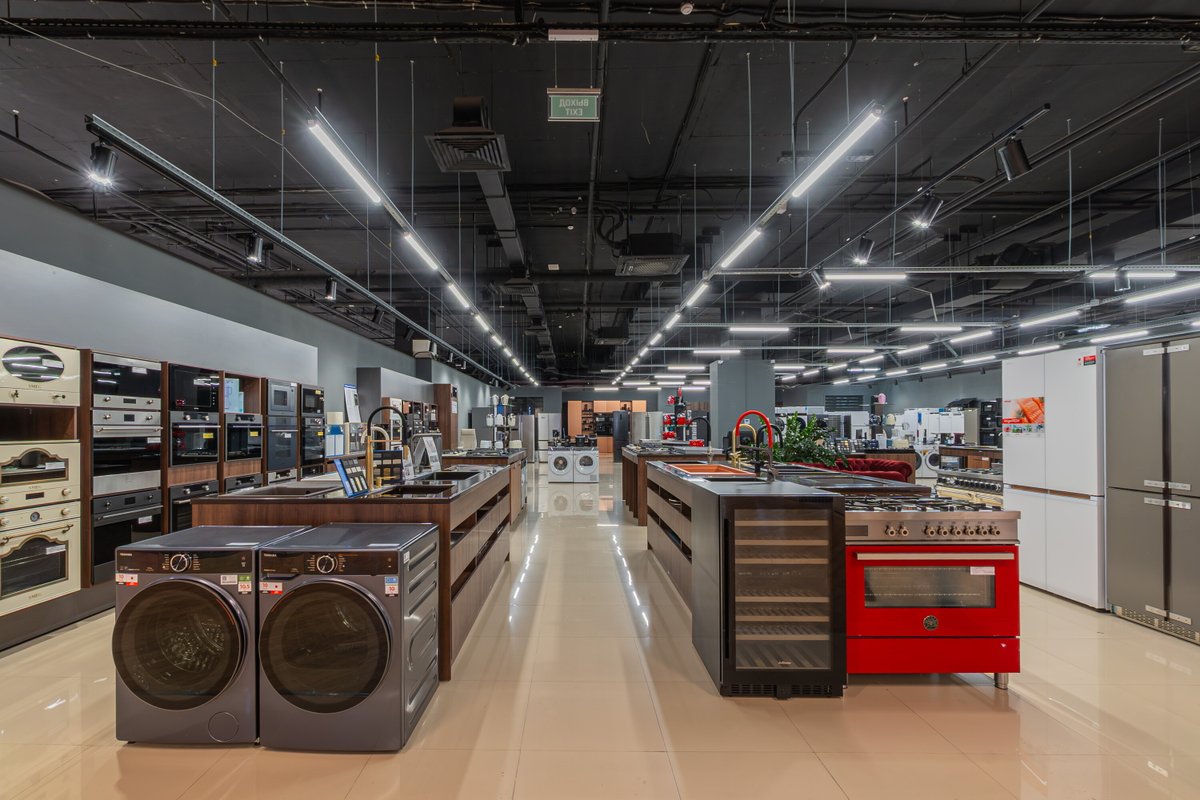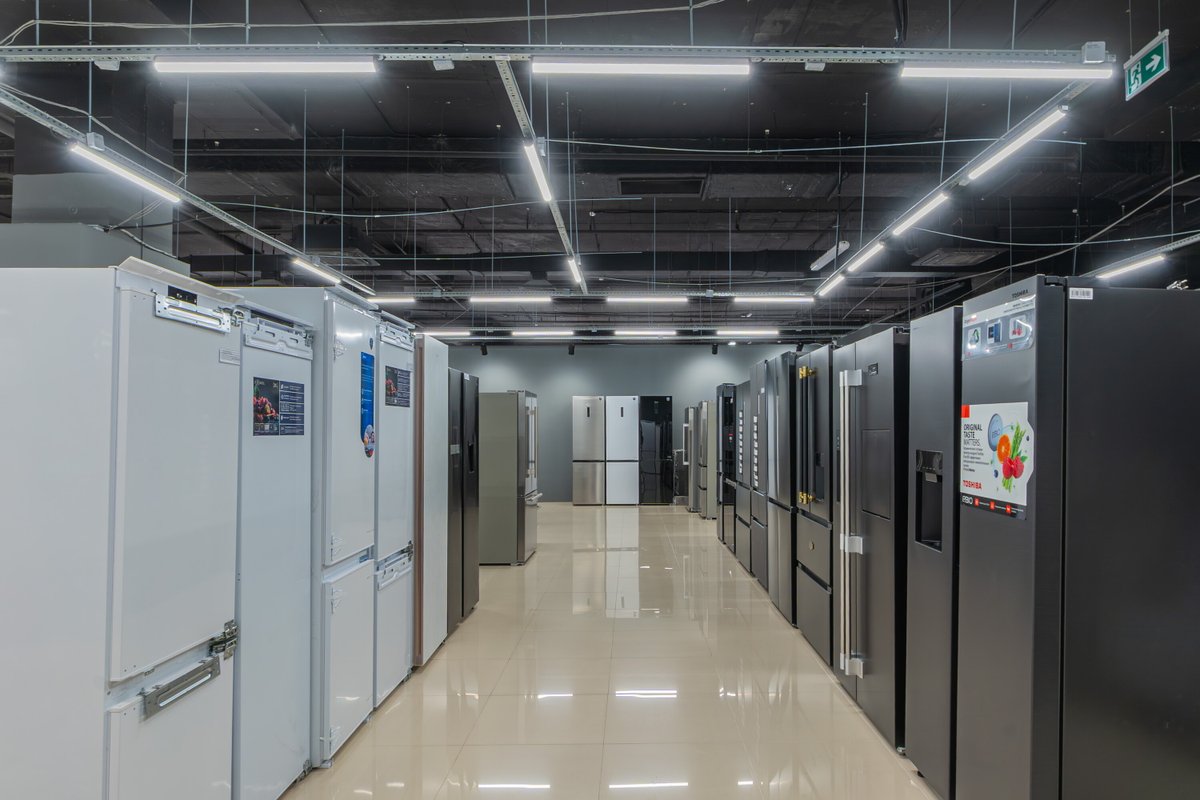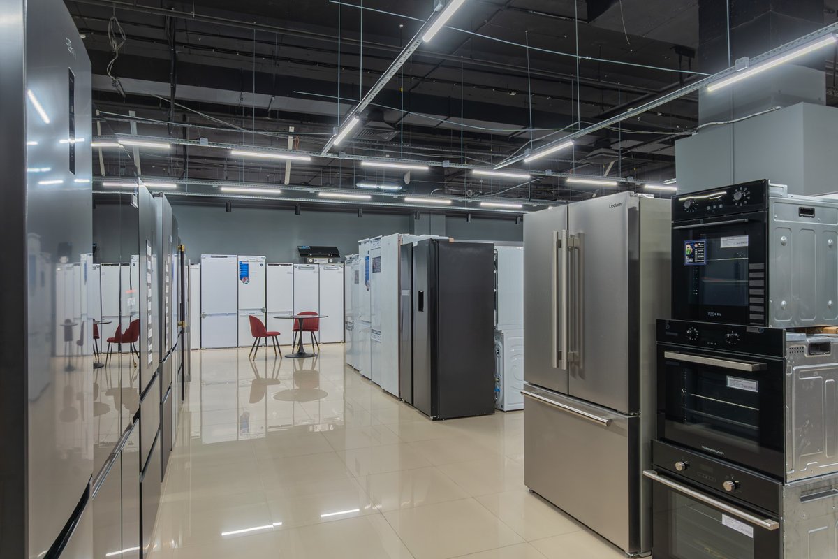 Широкий ассортимент техники впечатляет — от холодильников до малой бытовой.